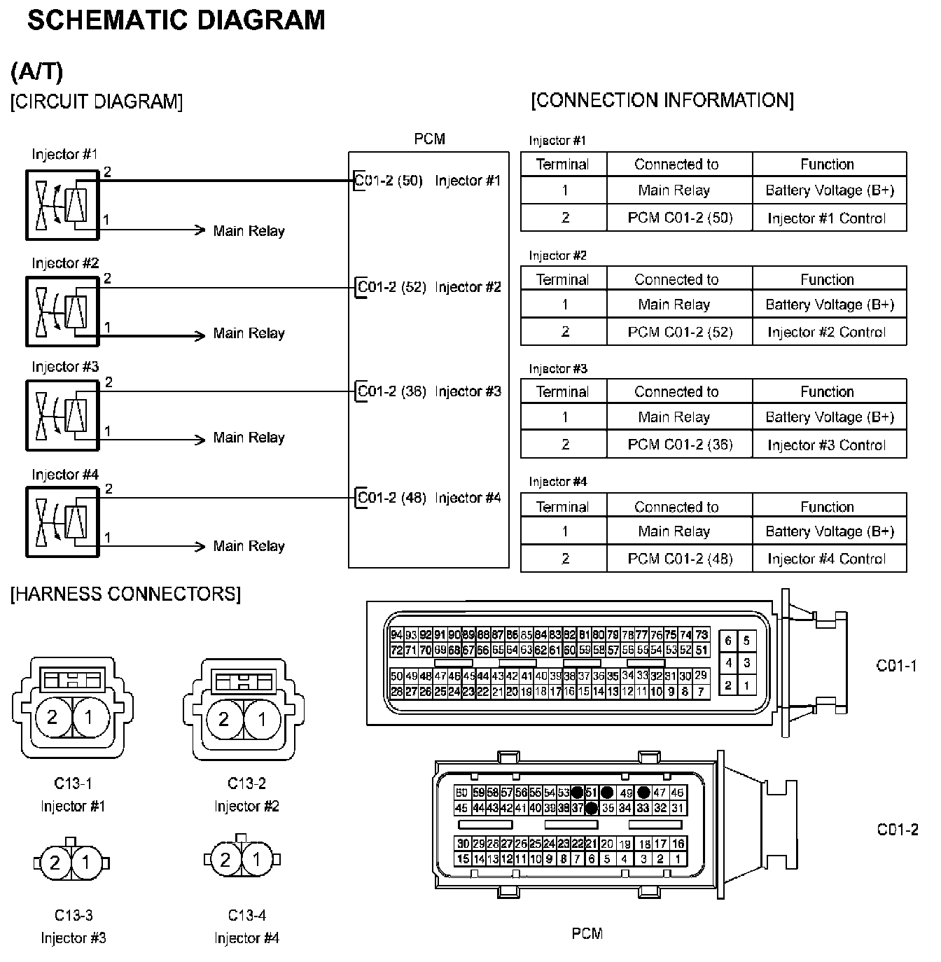 The fuel injector is a solenoid valve used to supply the correct fuel quantity for optimum combustion under varying speed and load conditions. The ECM/PCM regulates fuel injection quantity by controlling the injection duration based on load, speed, and (in closed-loop mode) HO2S feedback.