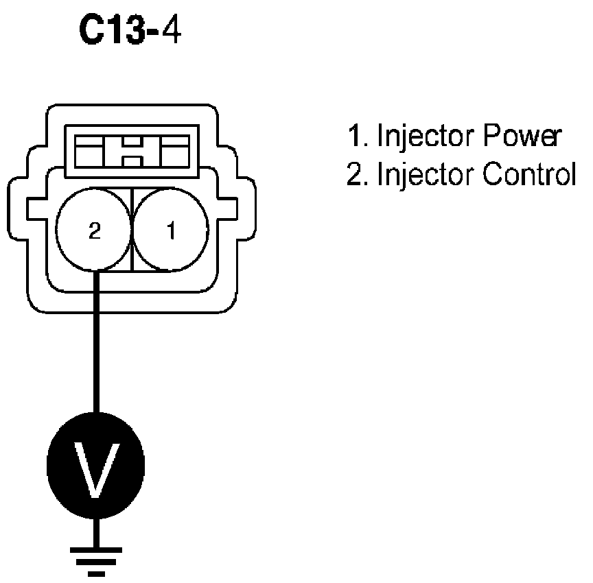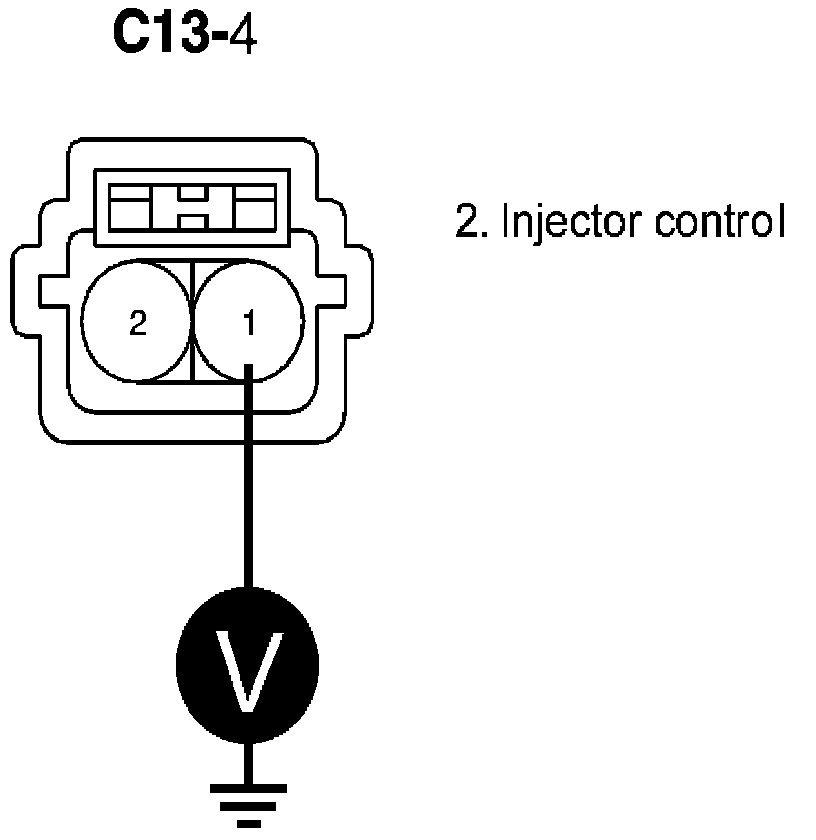 4. Measure voltage between terminal 2 of injector harness connector and chassis ground.