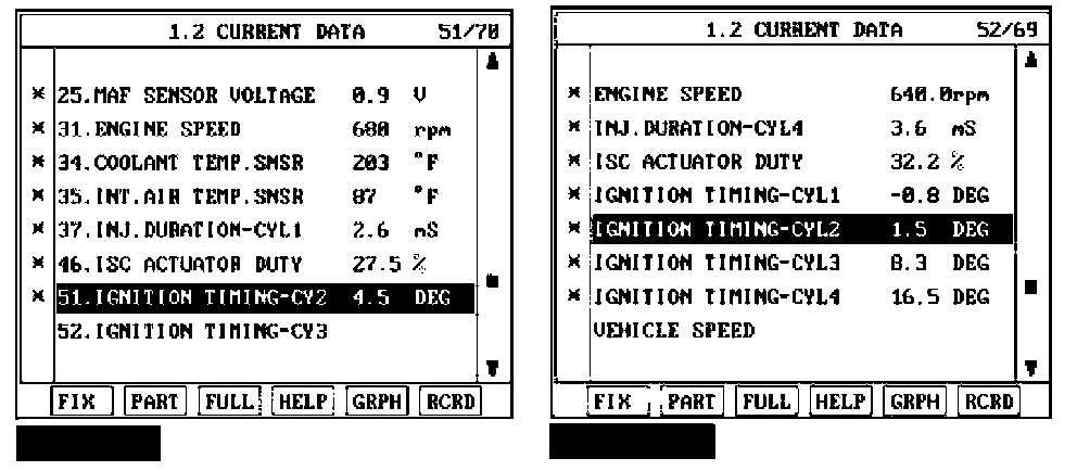 3. Monitor the "Parameters related to Ignition and Misfire" on the scantool.