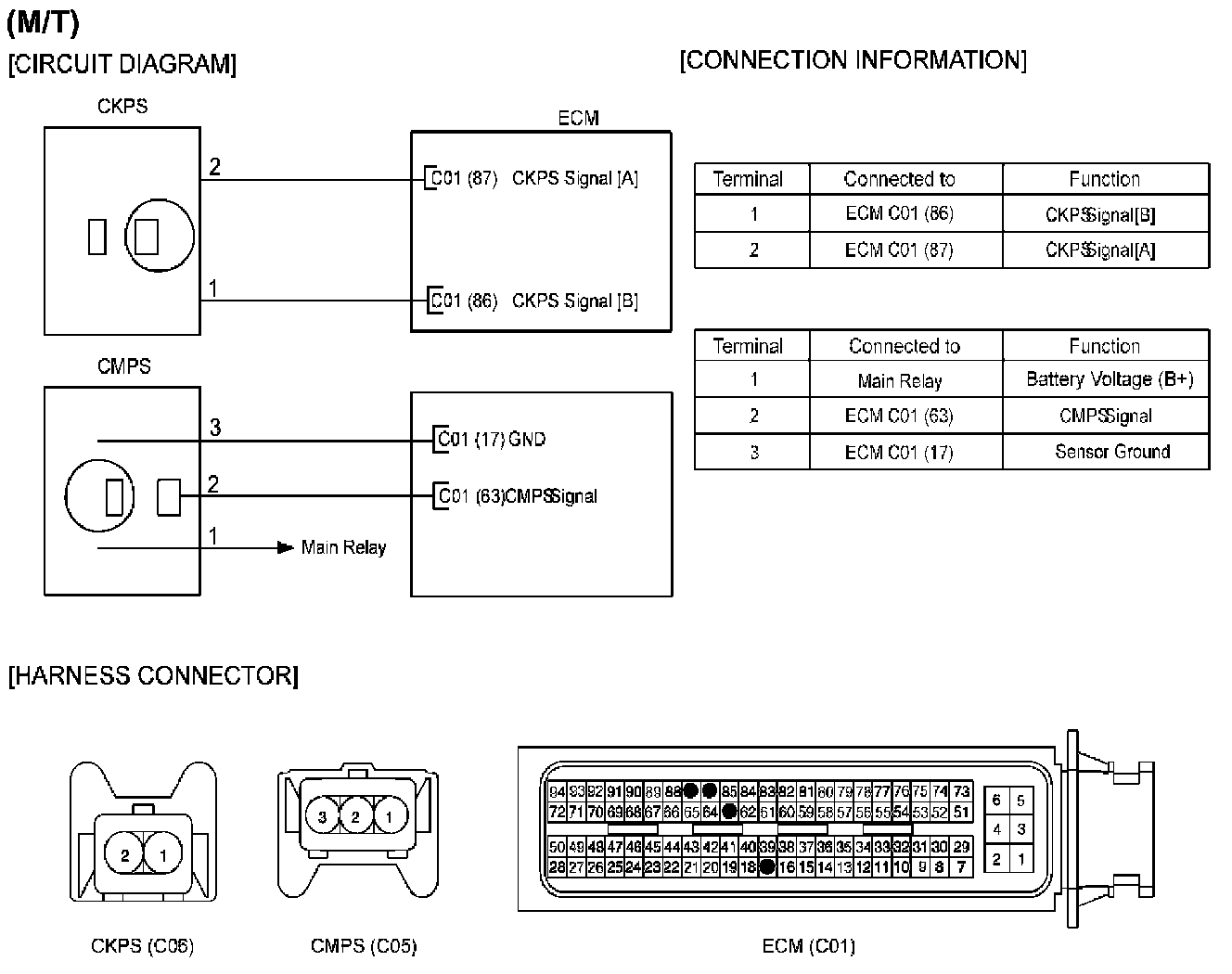 b. Disconnect CKPS connector and ECM/PCM connector.
