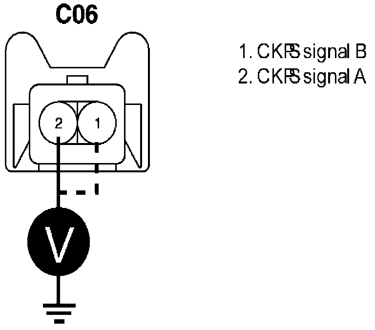 d. Measure the voltage between terminal 1 of CKPS harness connector and chassis ground. Then, measure the voltage between terminal 2 of CKPS harness connector and chassis ground.