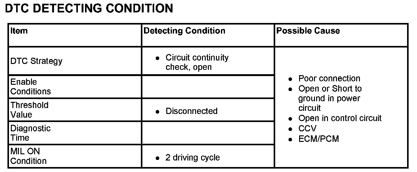 If there is Open in CCV circuit, ECM/PCM sets DTC P0449.