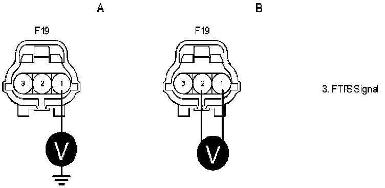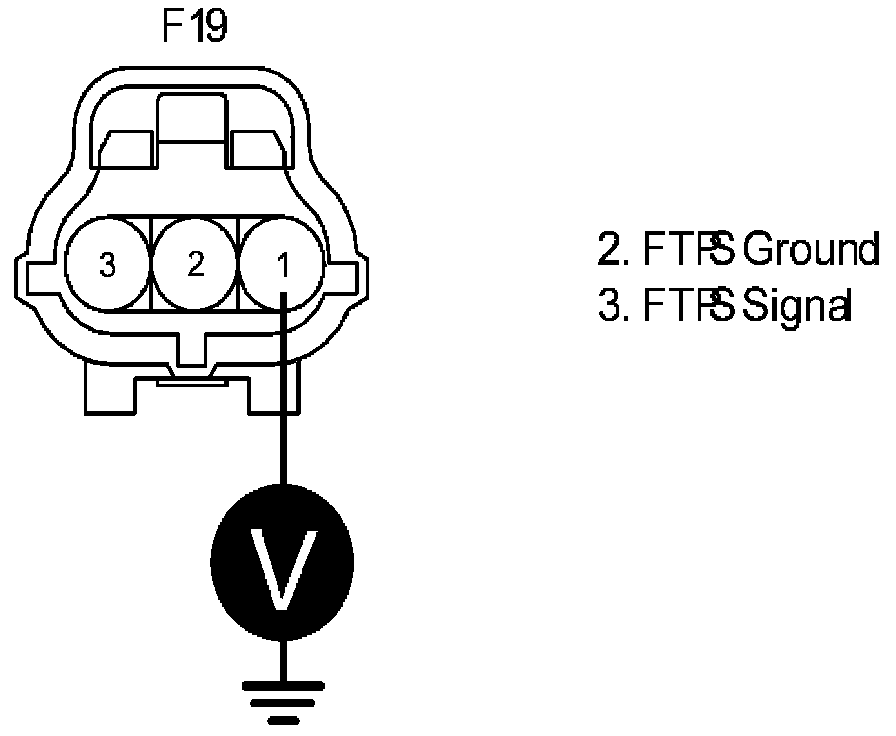 4. Measure the voltage between terminal 1 of FTPS harness connector and chassis ground. (A)