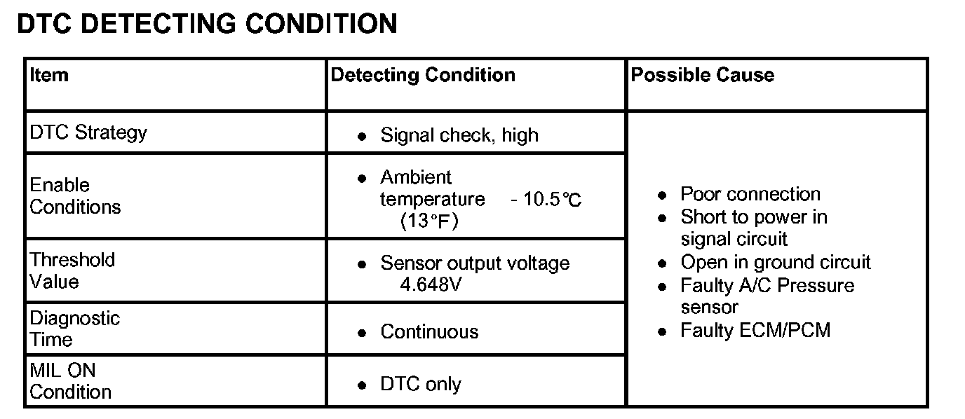If signal is over 4.648 V under detecting condition, ECM/PCM sets P0533.