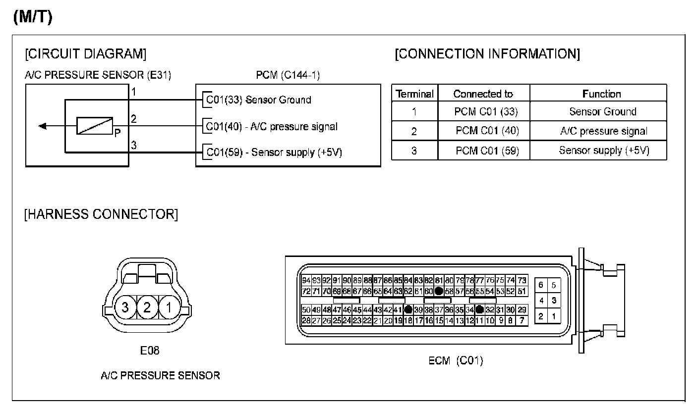 b. Disconnect A/C pressure sensor connector and ECM/PCM connector.