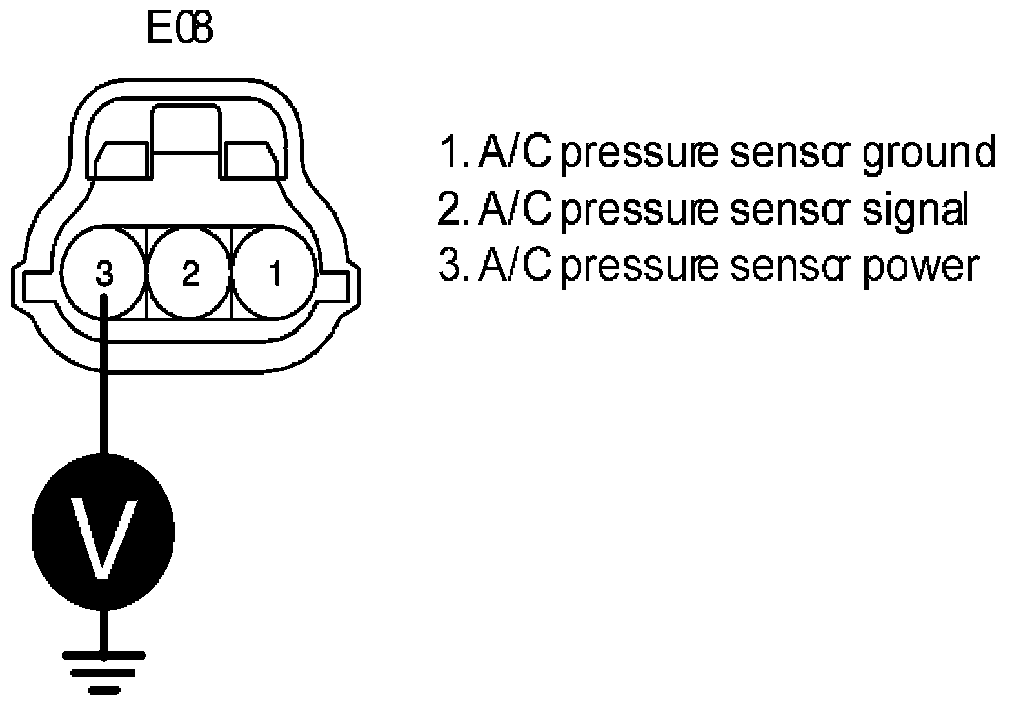 4. Measure the voltage between terminal 3 of A/C pressure sensor harness connector and chassis ground.