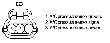 An A/C refrigerant pressure sensor is installed near the expansion valve. This sensor is used by the ECM/PCM to evaluate A/C system pressure for the purposes of idle speed correction, cooling/condenser fan control, and A/C compressor control.