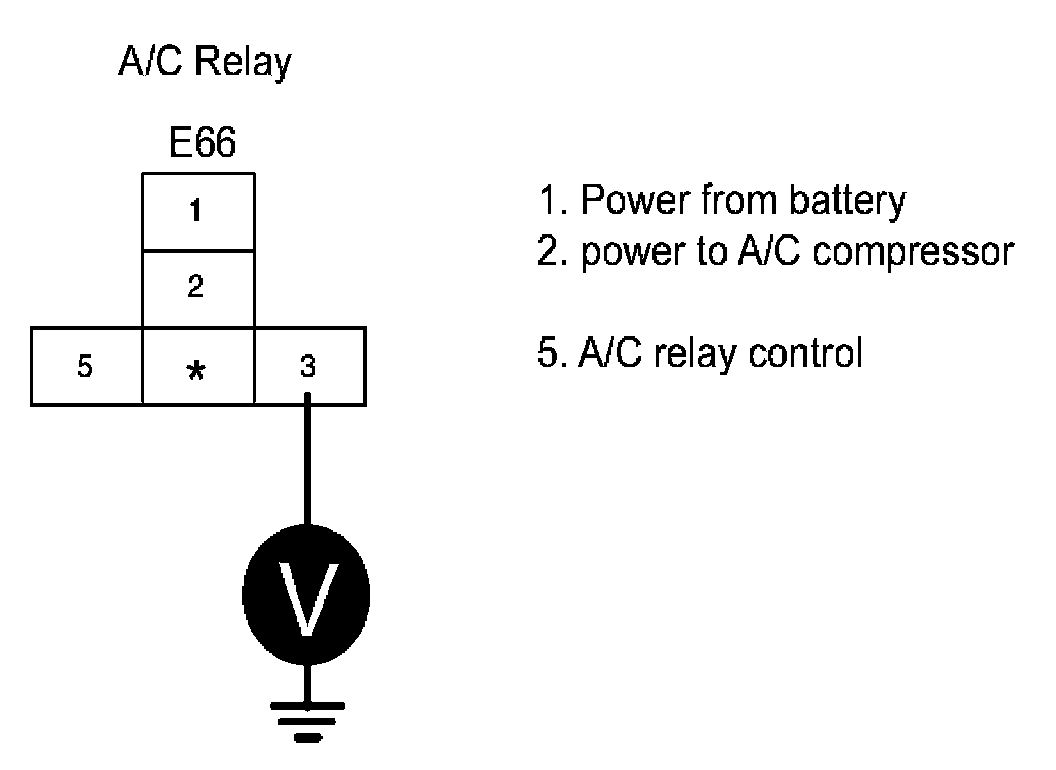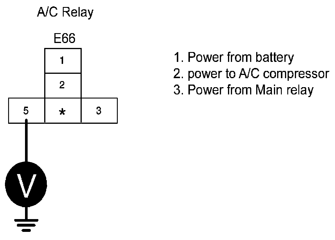 4. Measure the voltage between terminal 5 of A/C relay and ground.