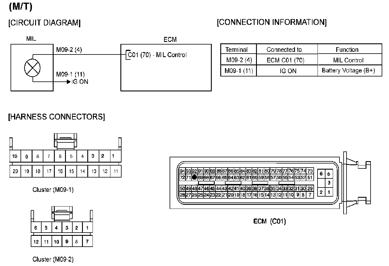 - Check the fuse(CLUSTER 10A) between Battery and Engine MIL.