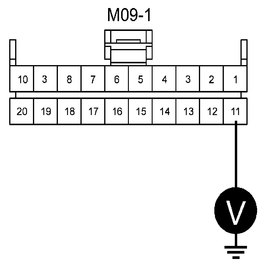 3. Measure the voltage between terminal 11 of Cluster harness connector and chassis ground.