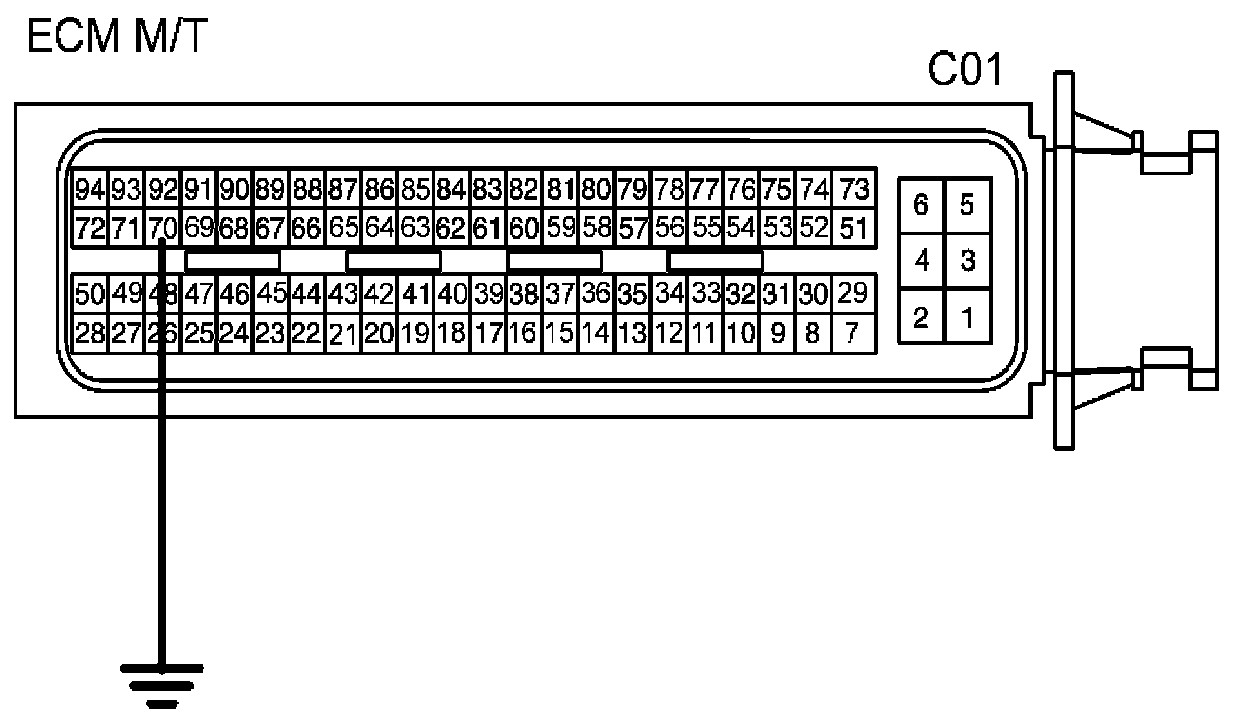 3. Short terminal 51/C01-2 of ECM/PCM harness connector to Ground. [A/T] Short terminal 70/C01 of ECM/PCM harness connector to Ground. [M/T]