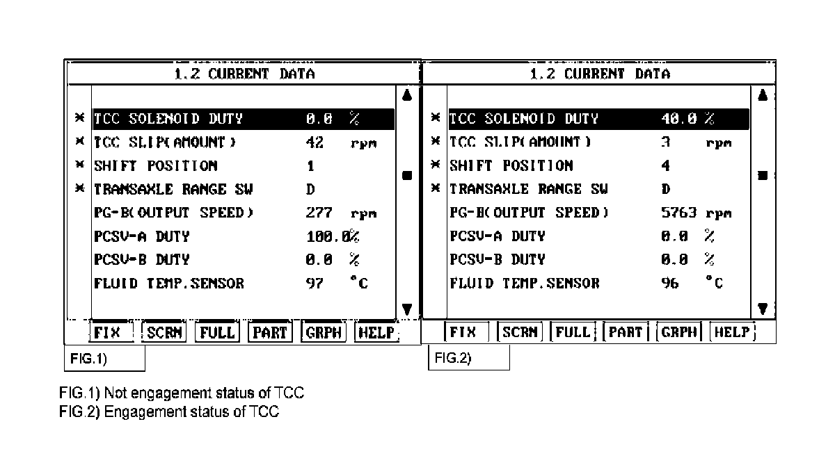 5. Check "TCC SOL. VALVE" parameter value changes while driving.