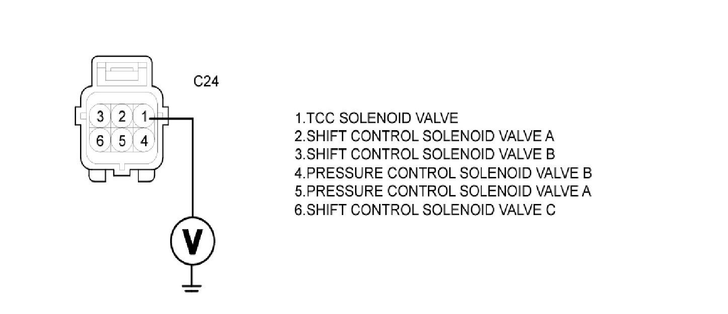 The PCM checks the Damper Clutch Control Signal by monitoring the feedback signal from the solenoid valve drive circuit. If an unexpected signal is monitored (for example, high voltage is detected when low voltage is expected, or low voltage is detected when high voltage is expected) the PCM judges that DCCSV circuit is malfunctioning and sets this code.