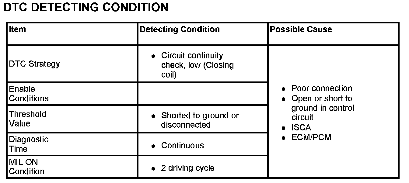 If there is Open or Short to ground in ISCA(closing coil) circuit, ECM/PCM sets DTC P1507.