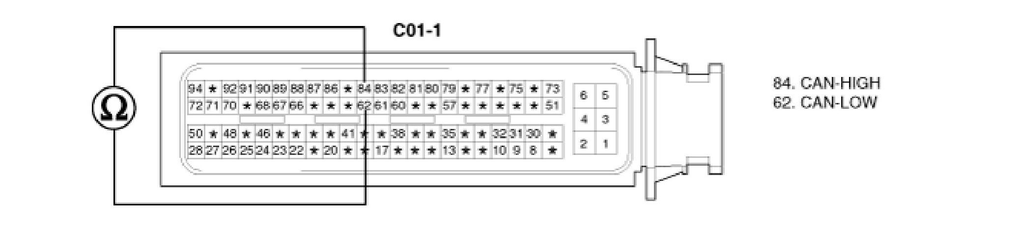 ^ Check connectors for looseness, poor connection, bending, corrosion, contamination, deterioration or damage of ECM and then Repair or replace Resistance for CAN communication as necessary and go to "Verification of Vehicle Repair" procedure.