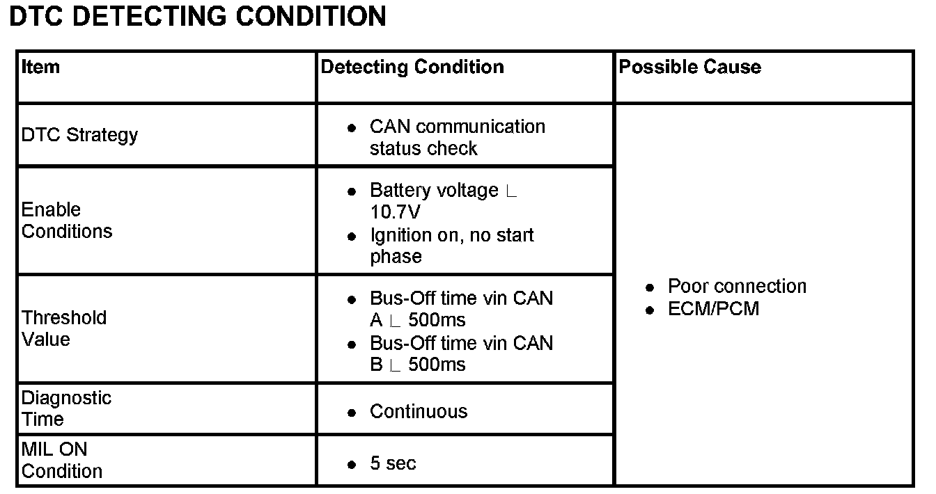If it is impossible to communicate through internal or external CAN line over 500 ms, ECM/PCM sets DTC