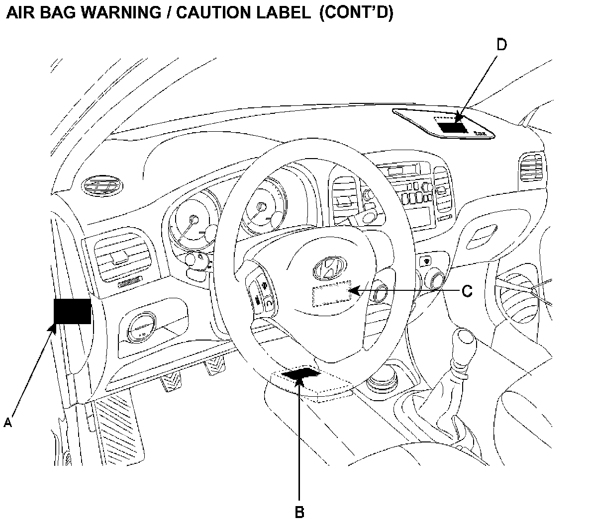 Air Bag Warning/Caution Label (Continued):