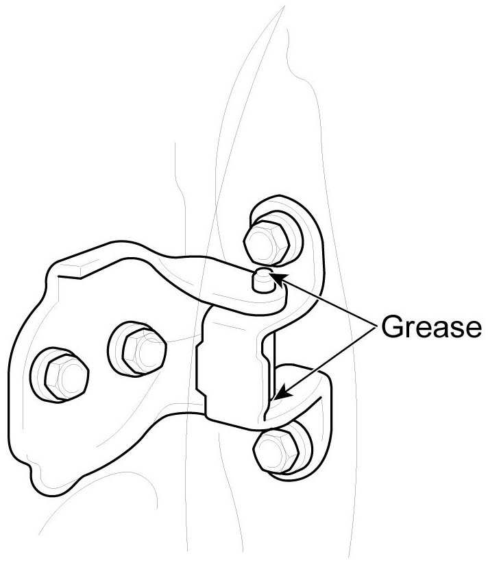 4. Grease the pivot portions of the hinges indicated by the arrows.