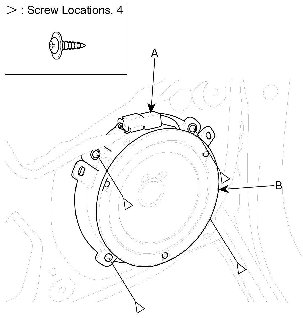 After disconnect the speaker mounting screw and connector (A), remove the speaker (B).