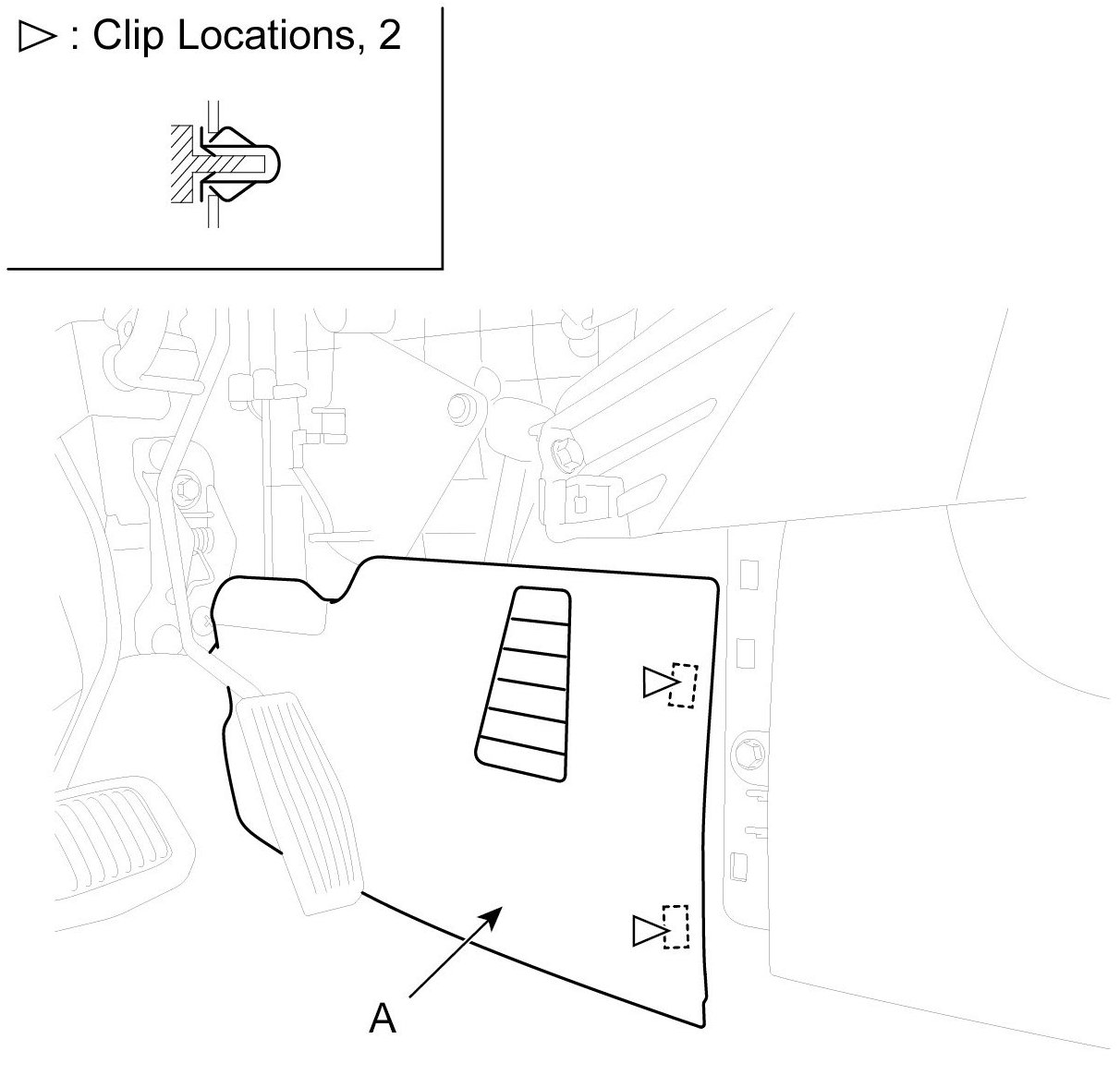 5. Loosening the console mounting screw and clip, remove the console assembly (A).