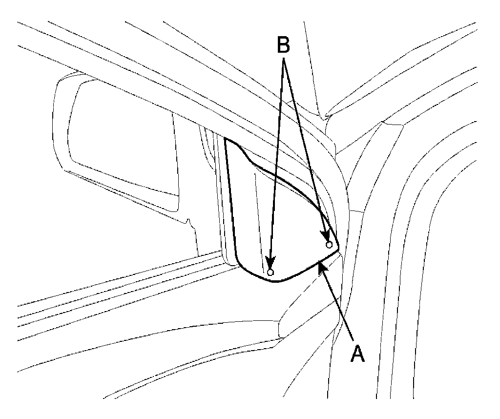 1. Remove the front door quadrant inner cover (B).