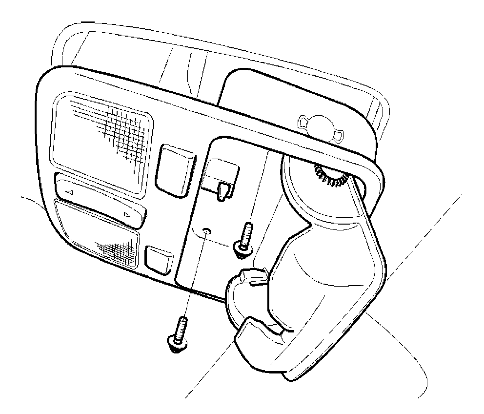 2. Open the sunglass case cover from the overhead console then remove the 2 screws holding the overhead console.