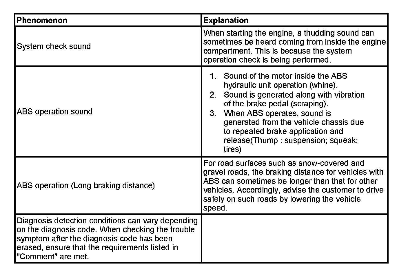 The phenomena listed in the following table are not abnormal.