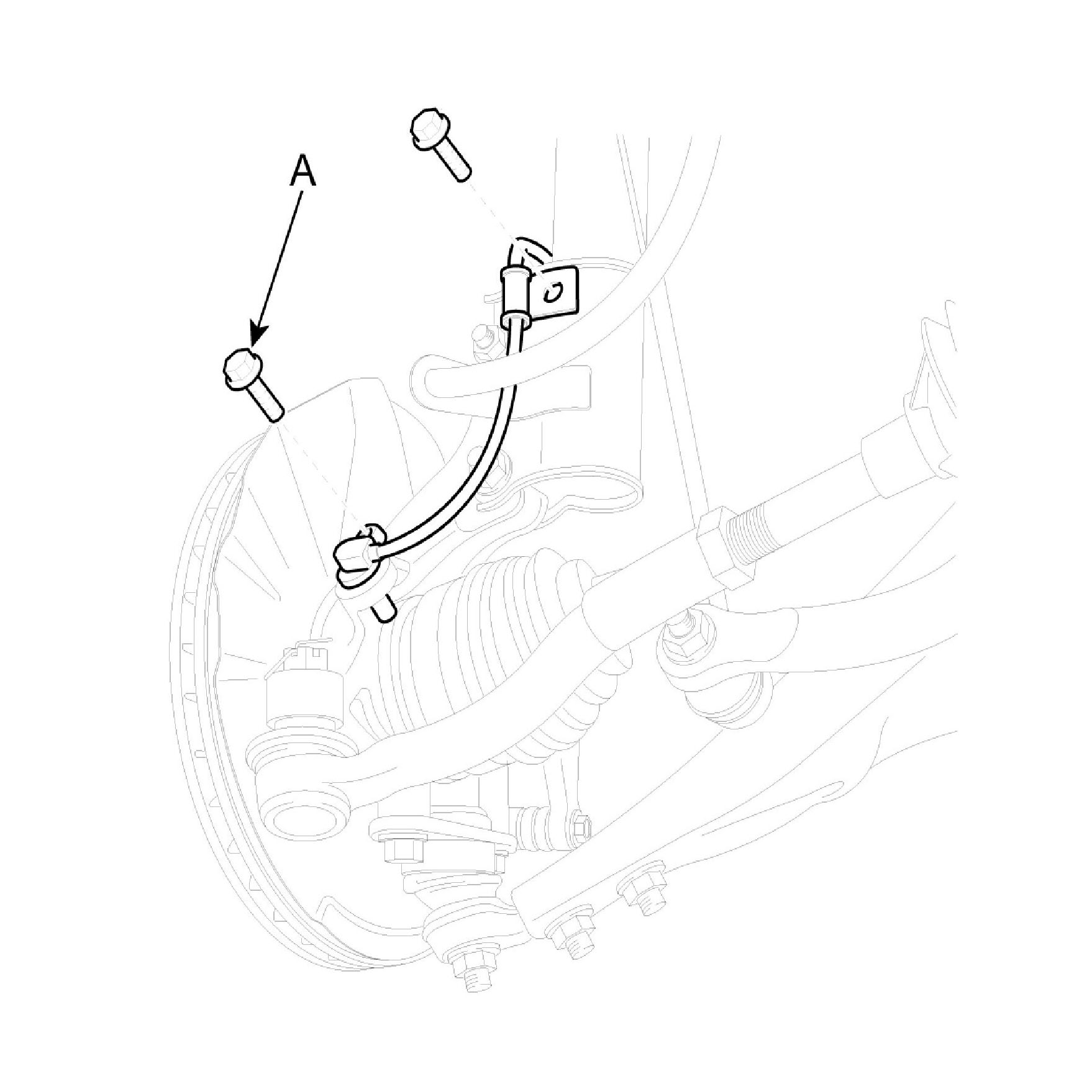 1. Remove the front wheel speed sensor mounting bolt (A).