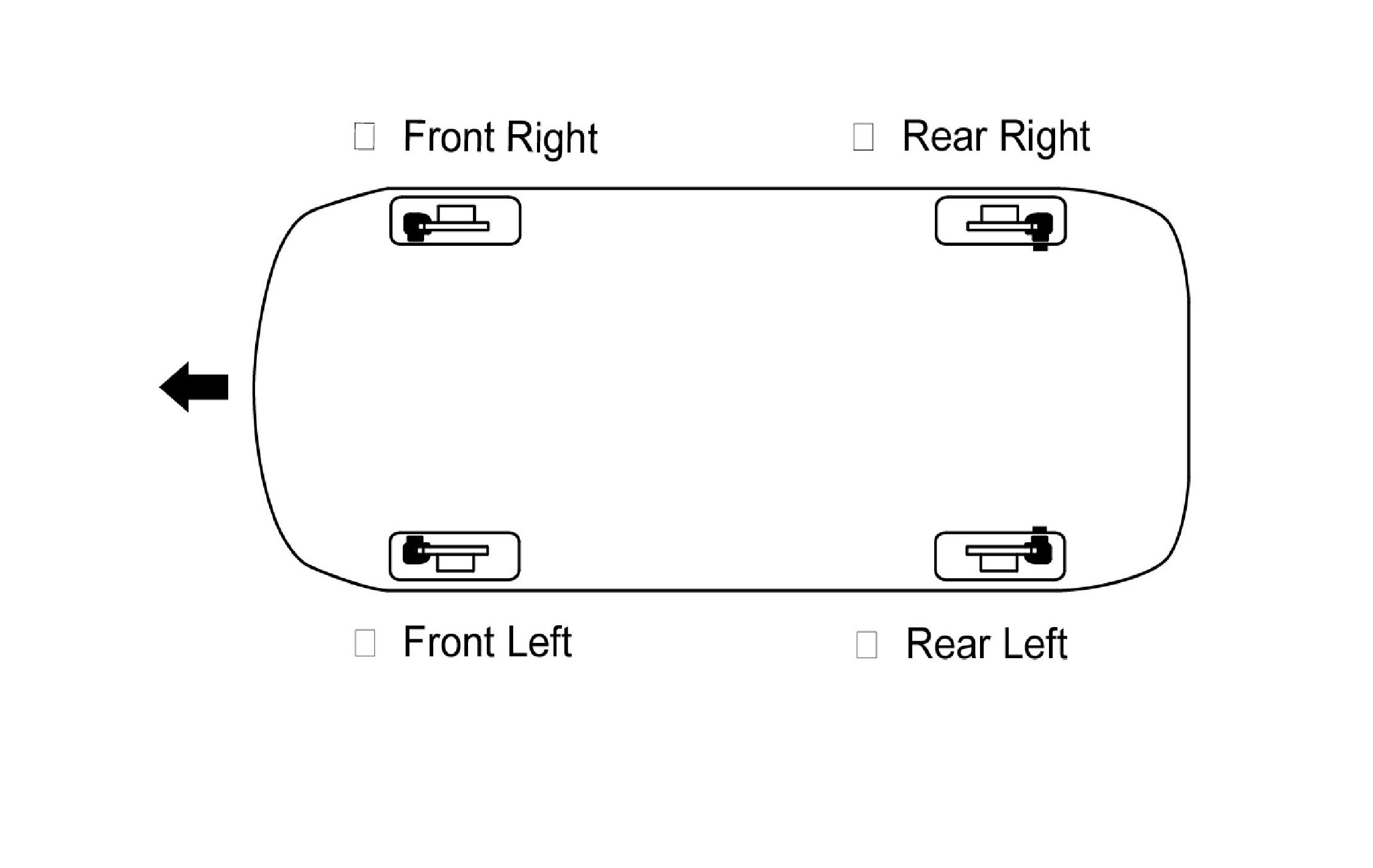4. Repeat the procedure for each wheel in the sequence shown below until air bubbles no longer appear in the fluid.
