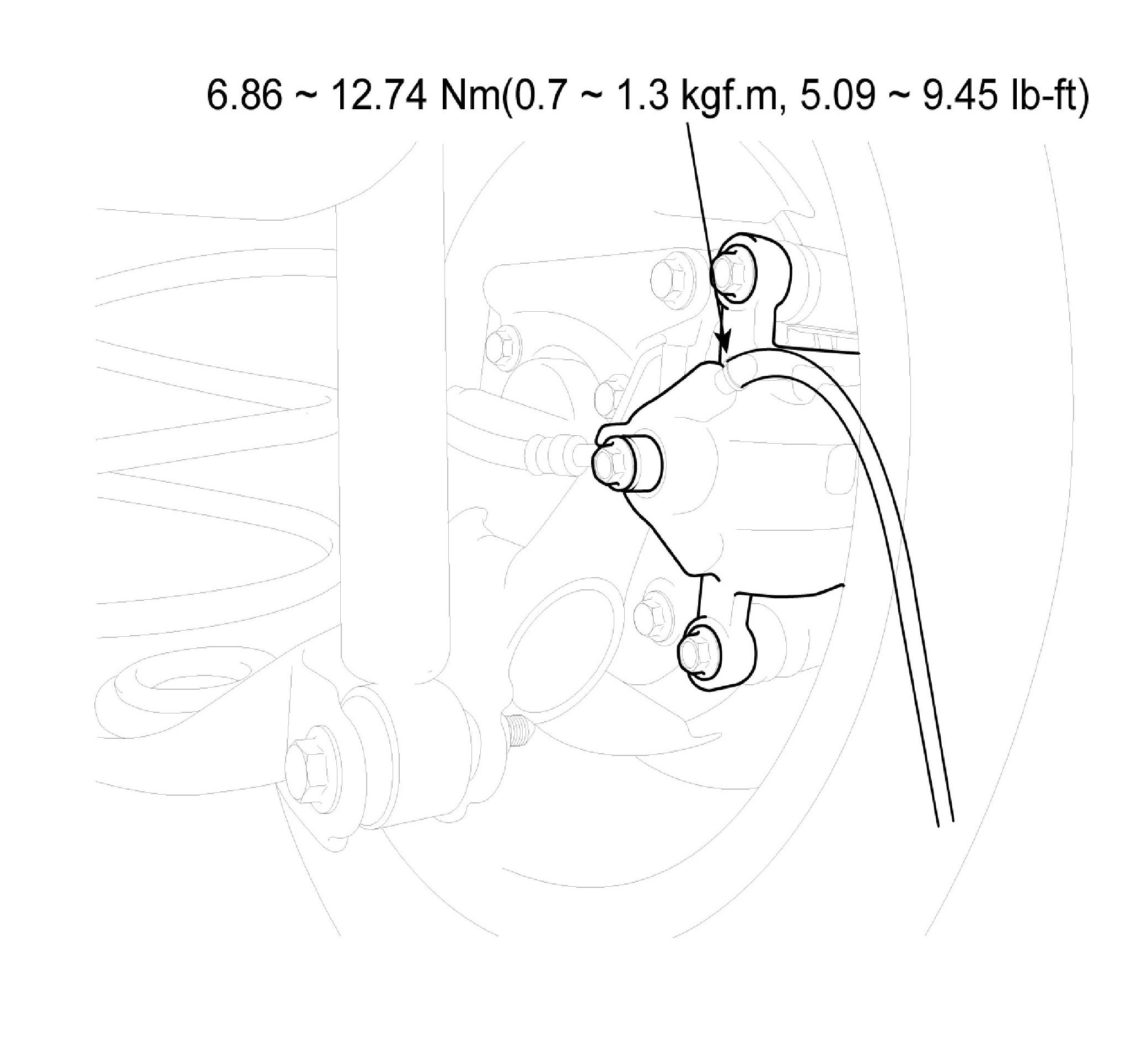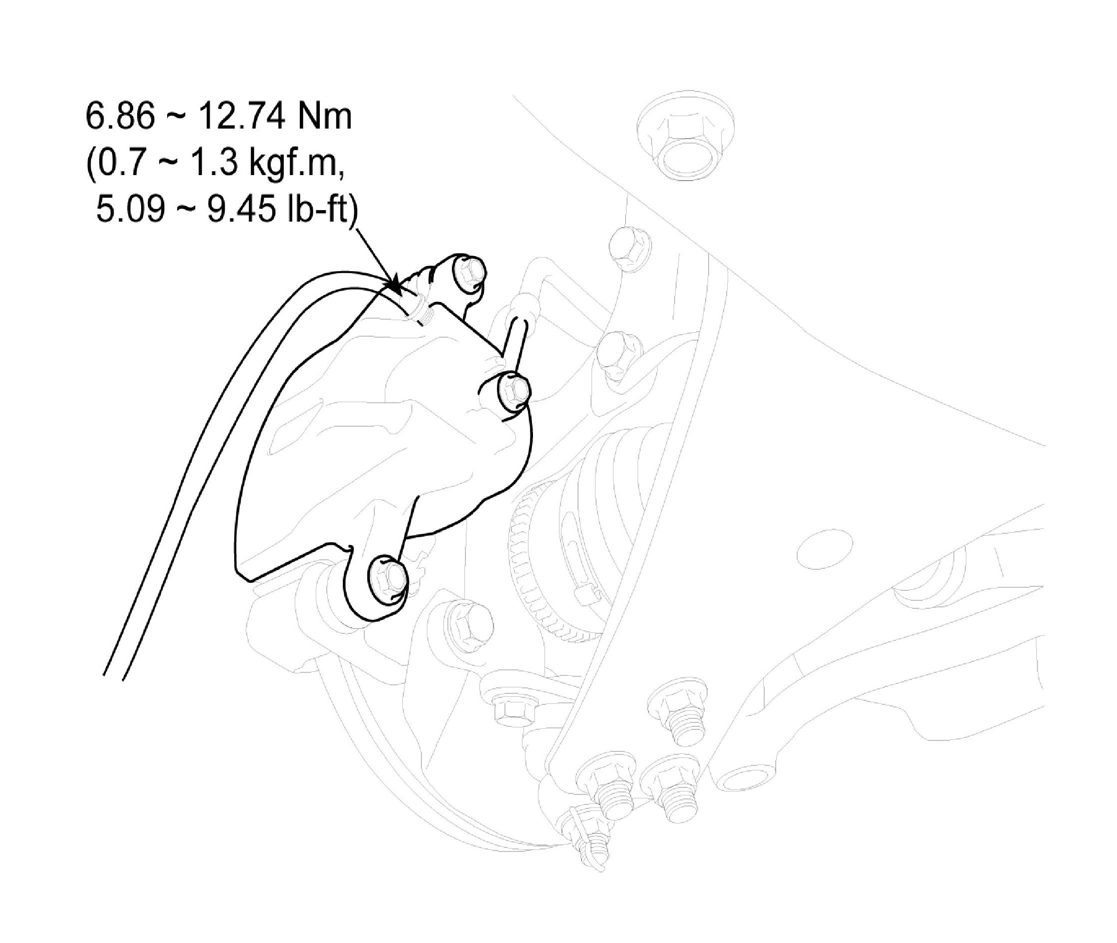 3. Loosen the right-rear brake bleed screw to allow air to escape from the system. Then tighten the bleed screw securely.