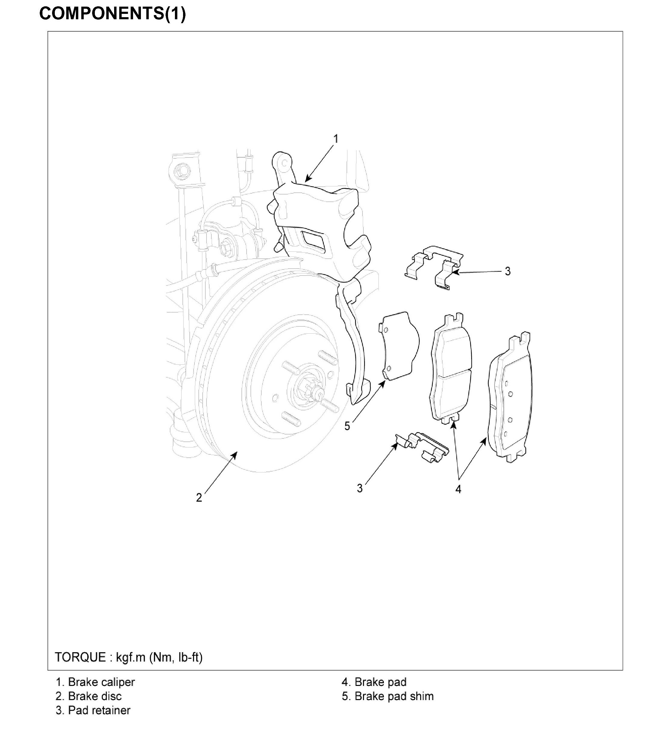NOTE: Engagement of the brake may require a greater pedal stroke immediately after the brake pads have been replaced as a set. Several applications of the brake will restore the normal pedal stroke.