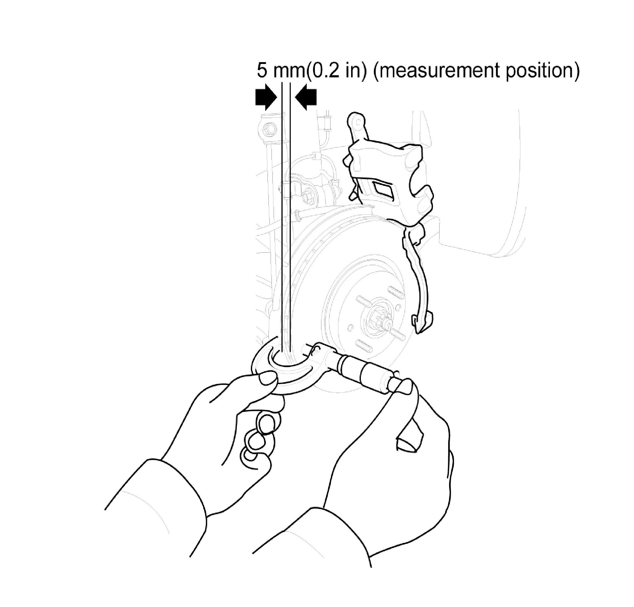 FRONT BRAKE DISC THICKNESS CHECK1. Remove all rust and contamination from the disc surface, and then measure the disc thickness at 4 positions at least.