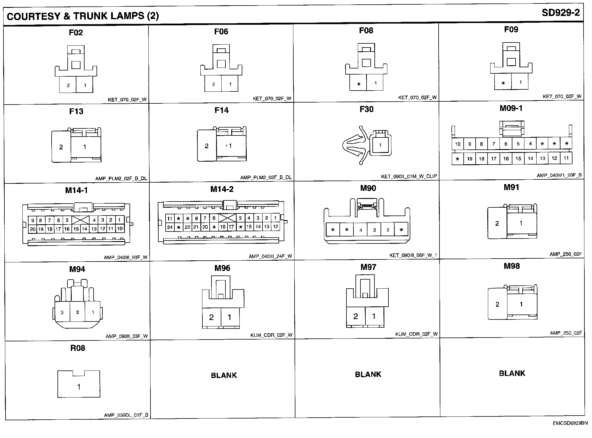 Courtesy & Trunk Lamps Connector Pin Outs: