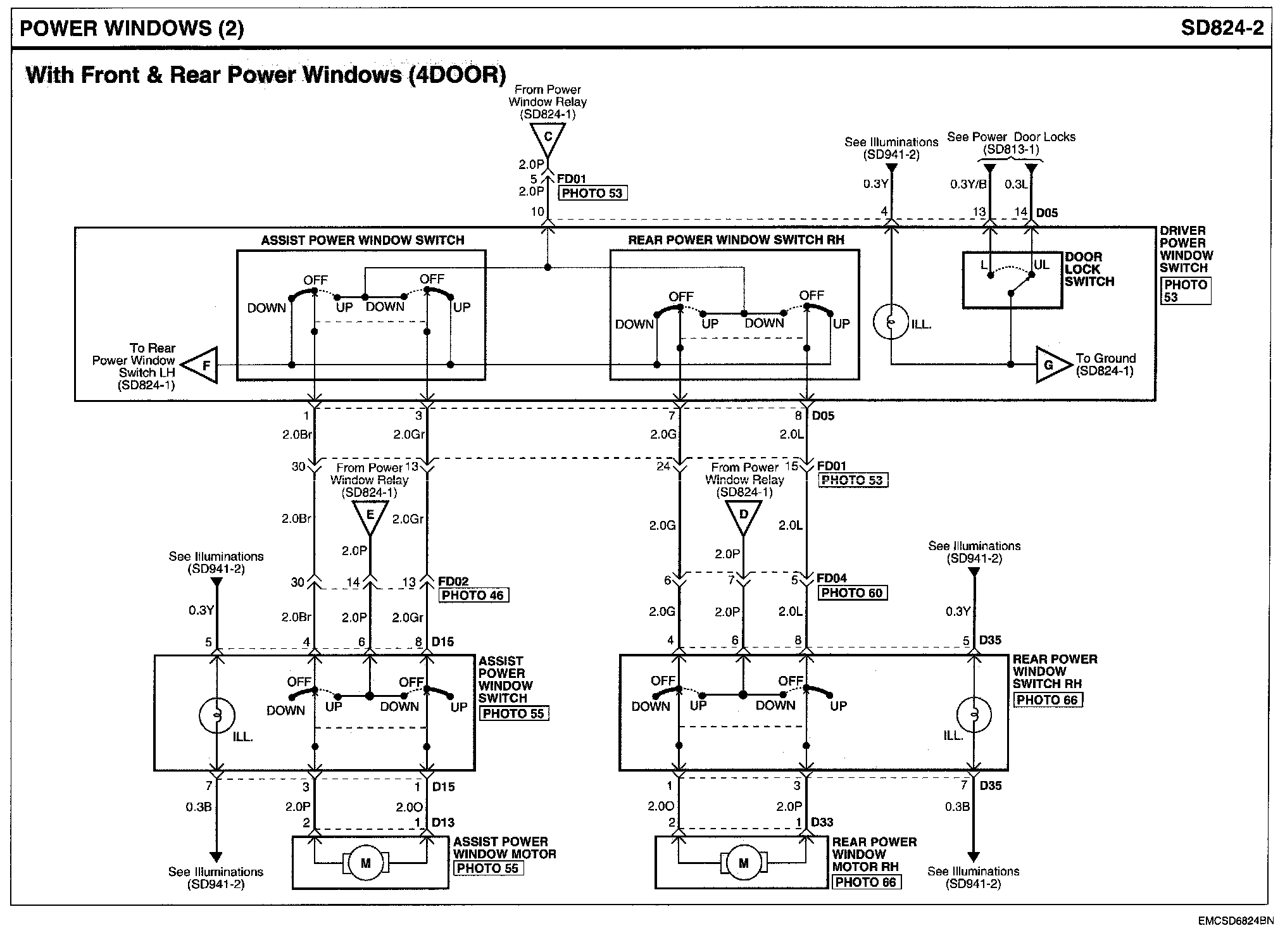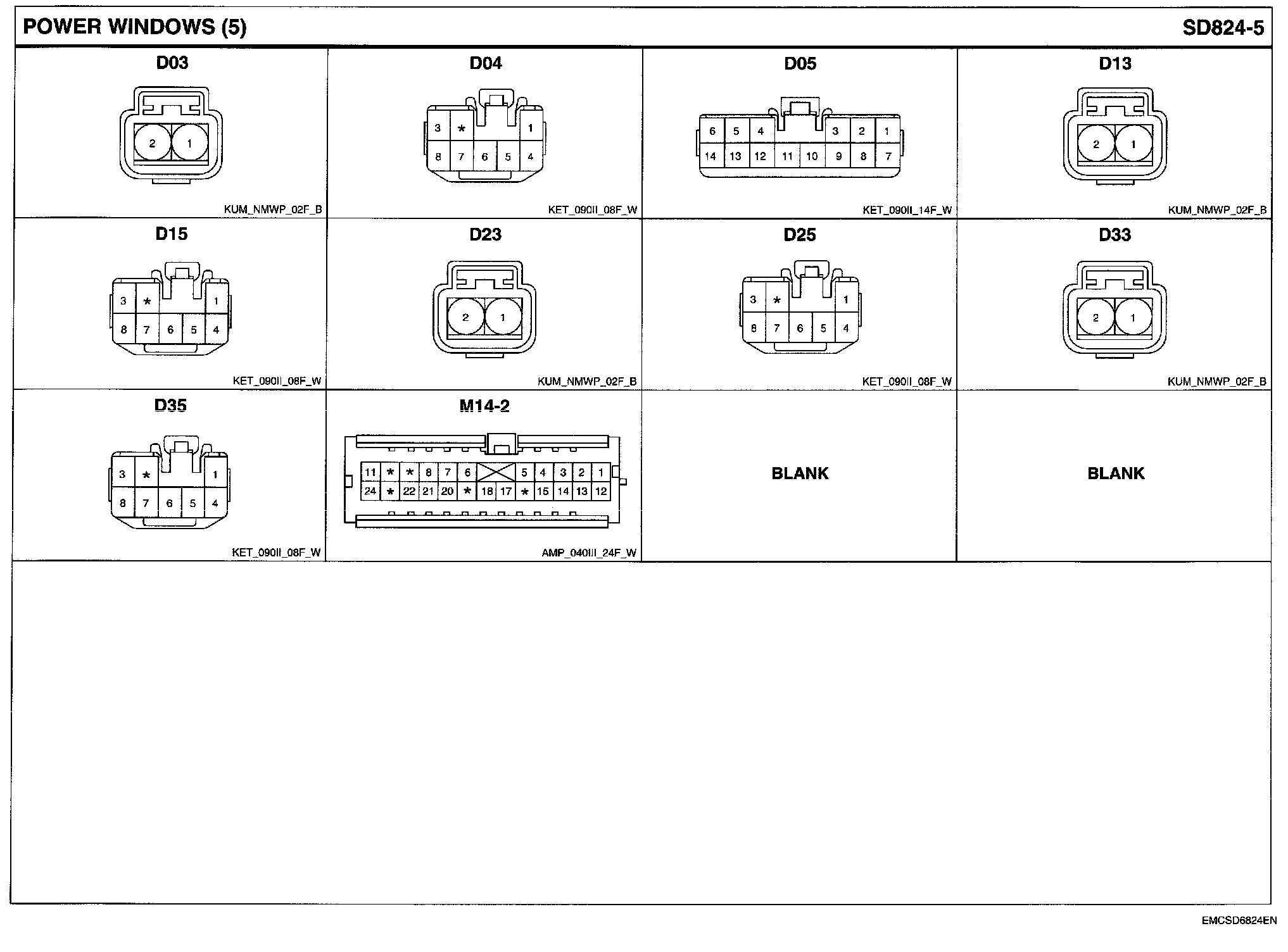 Power Windows Connector Pin Outs: