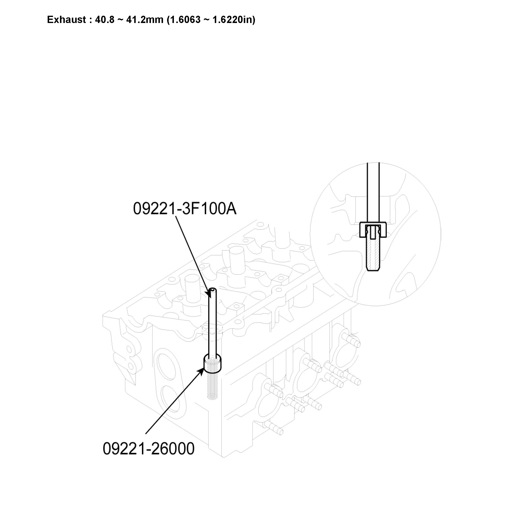 3. Using the SST (09221-3F100A, 09221-26000), press-fit the valve guide. The valve guide must be press-fitted from the upper side of the cylinder head. Keep in mind that the intake and exhaust valve guides are different in length.