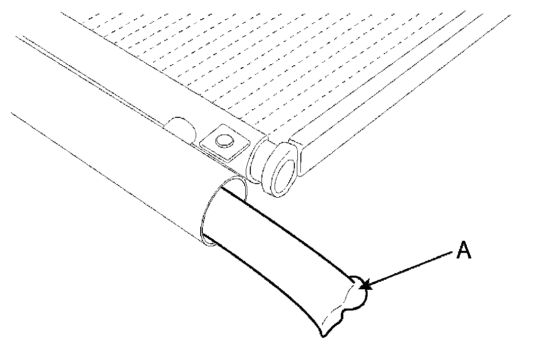 5. Remove 2 bolts, and then remove the condenser (A) by lifting it up. Be careful not to damage the radiator and condenser fins when removing the condenser.