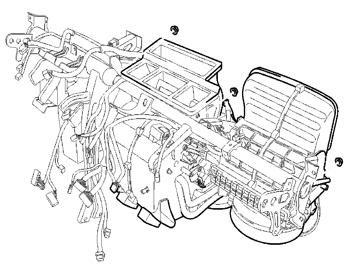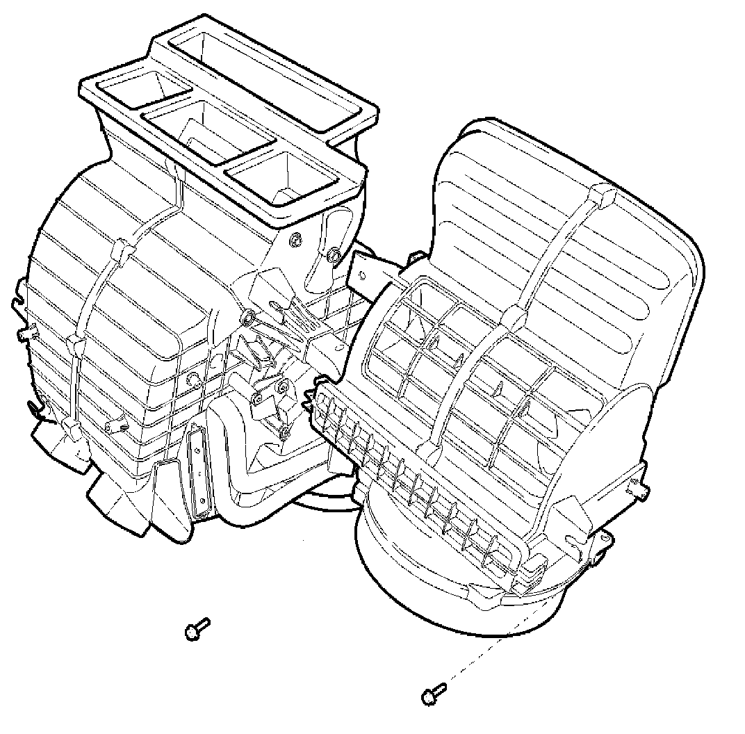 11. Disconnect the heater and blower unit from the cowl cross bar assembly.