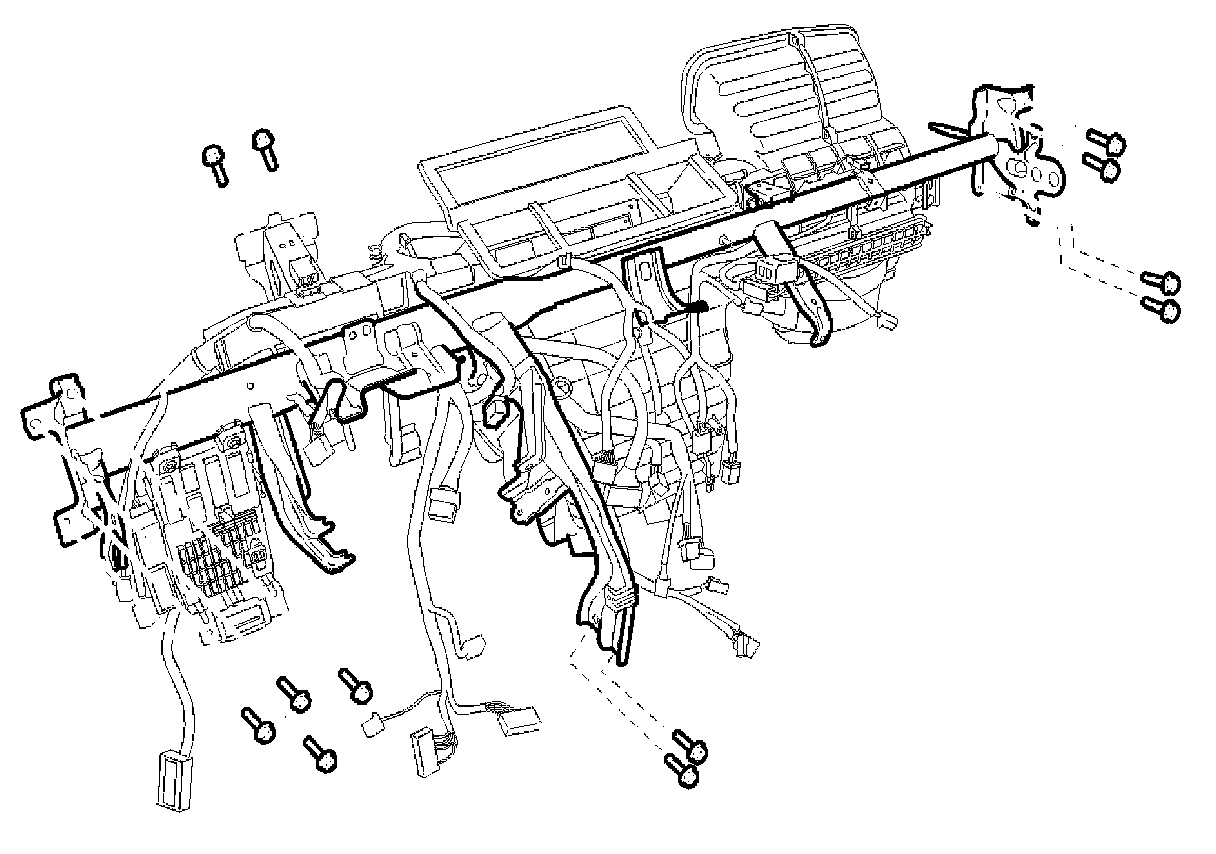 10. Unscrew 12 bolts and then remove the cowl cross bar and heater & blower unit assembly simultaneously.
