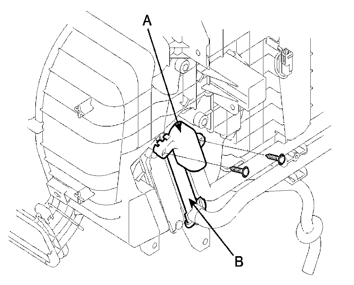 5. Disconnect the inlet (A) and outlet (B) heater hoses from the heater unit.