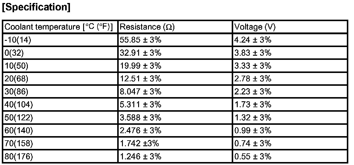 3. If the measured resistance is not specification, substitute with a known-good water temperature sensor and check for proper operation.
