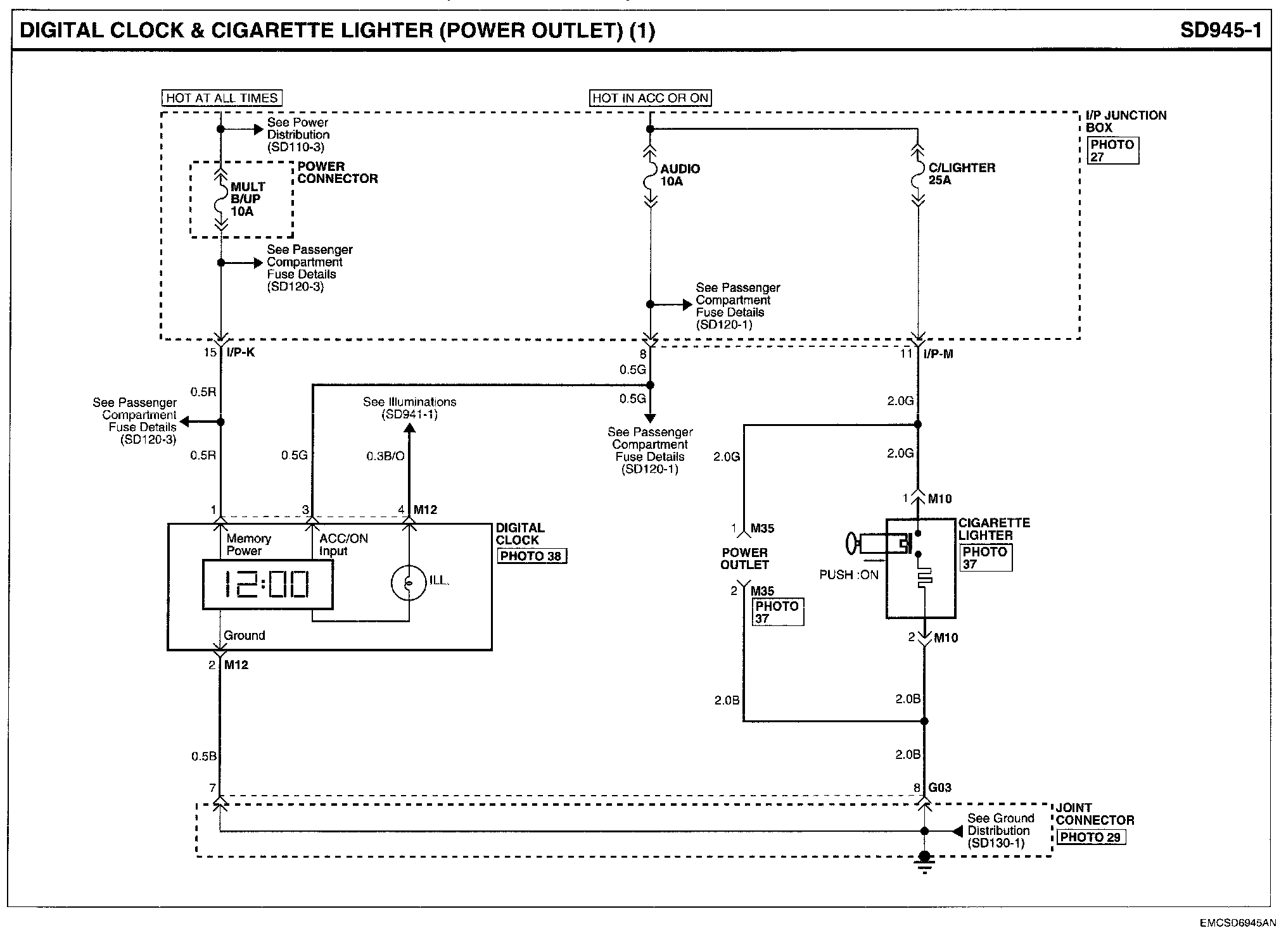 Digital Clock & Cigarette Lighter (Power Outlet) Connector Pin Outs: