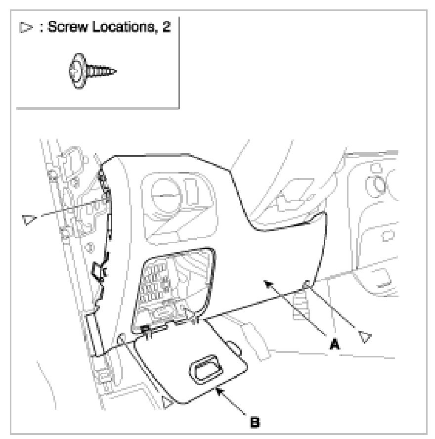 3. Loosening the crash pad lower panel mounting screw. Remove the lower crash pad panel (A).