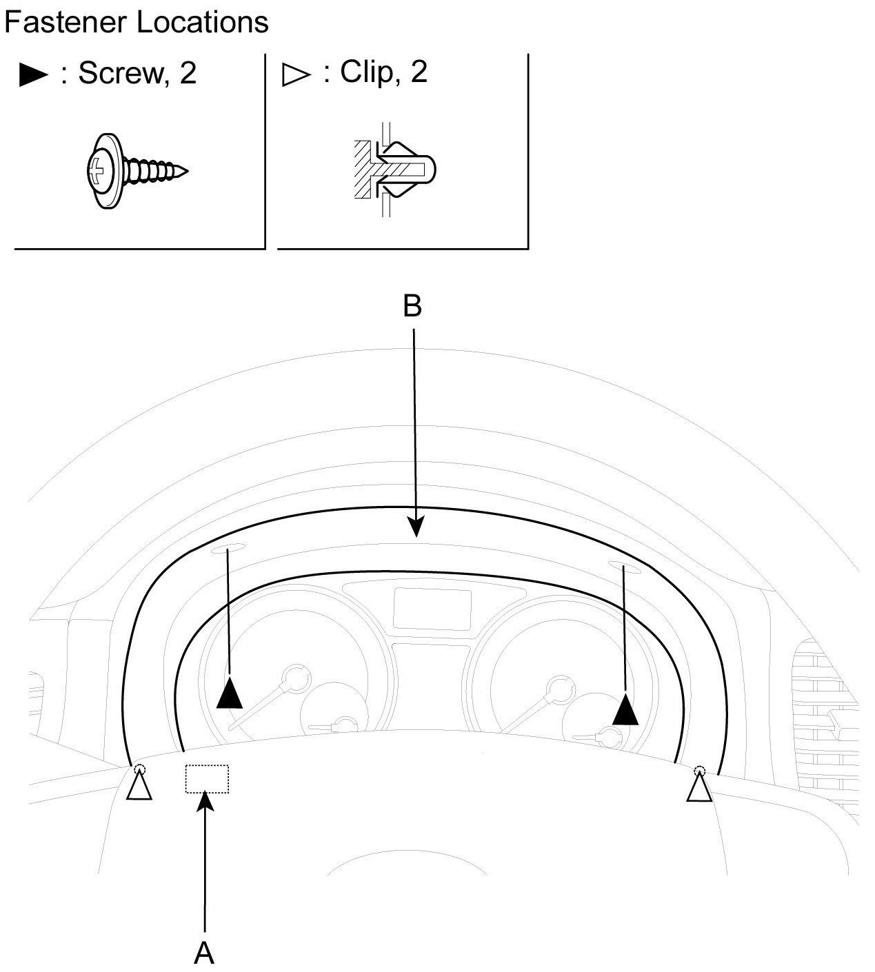 2. After disconnecting the trip sensor connector (A), remove the cluster facia panel (B).