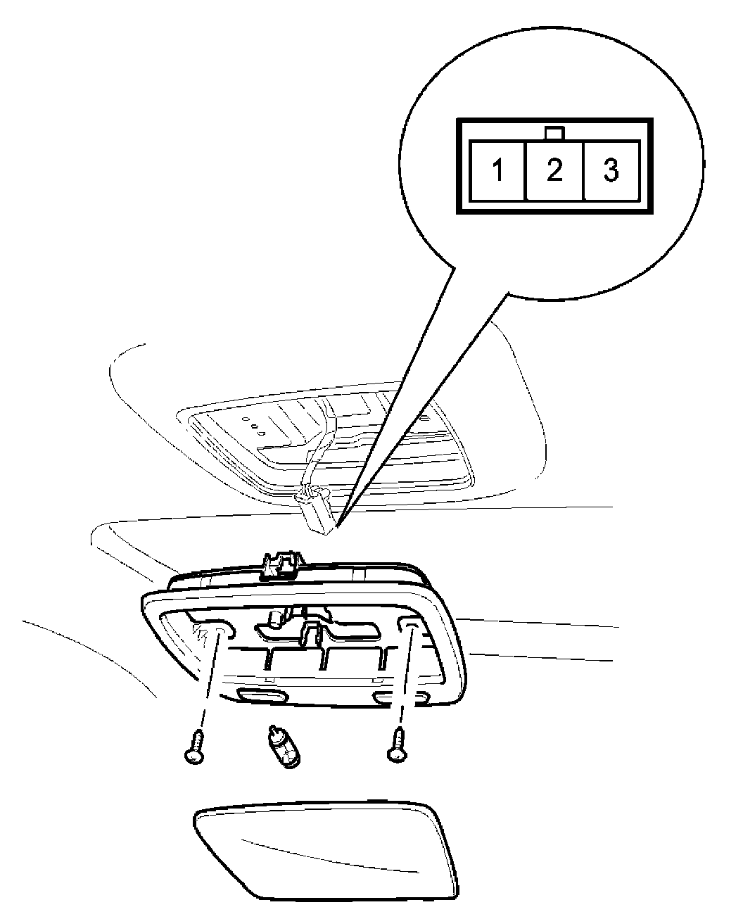 Remove the room lamp assembly then check for continuity between terminals.