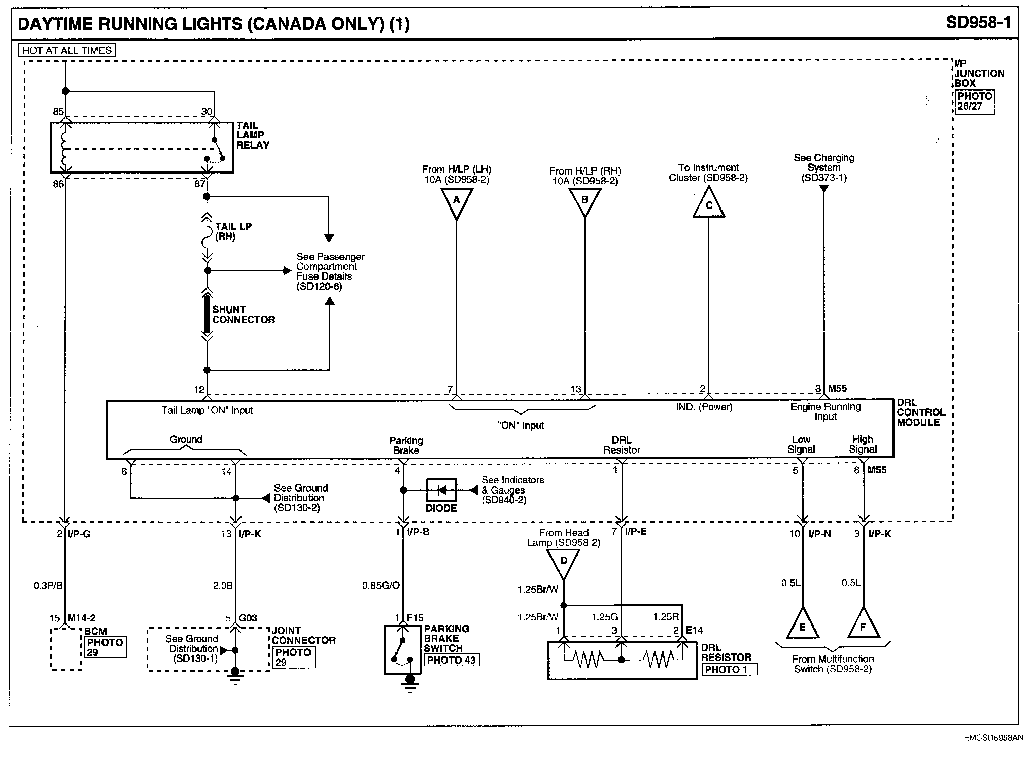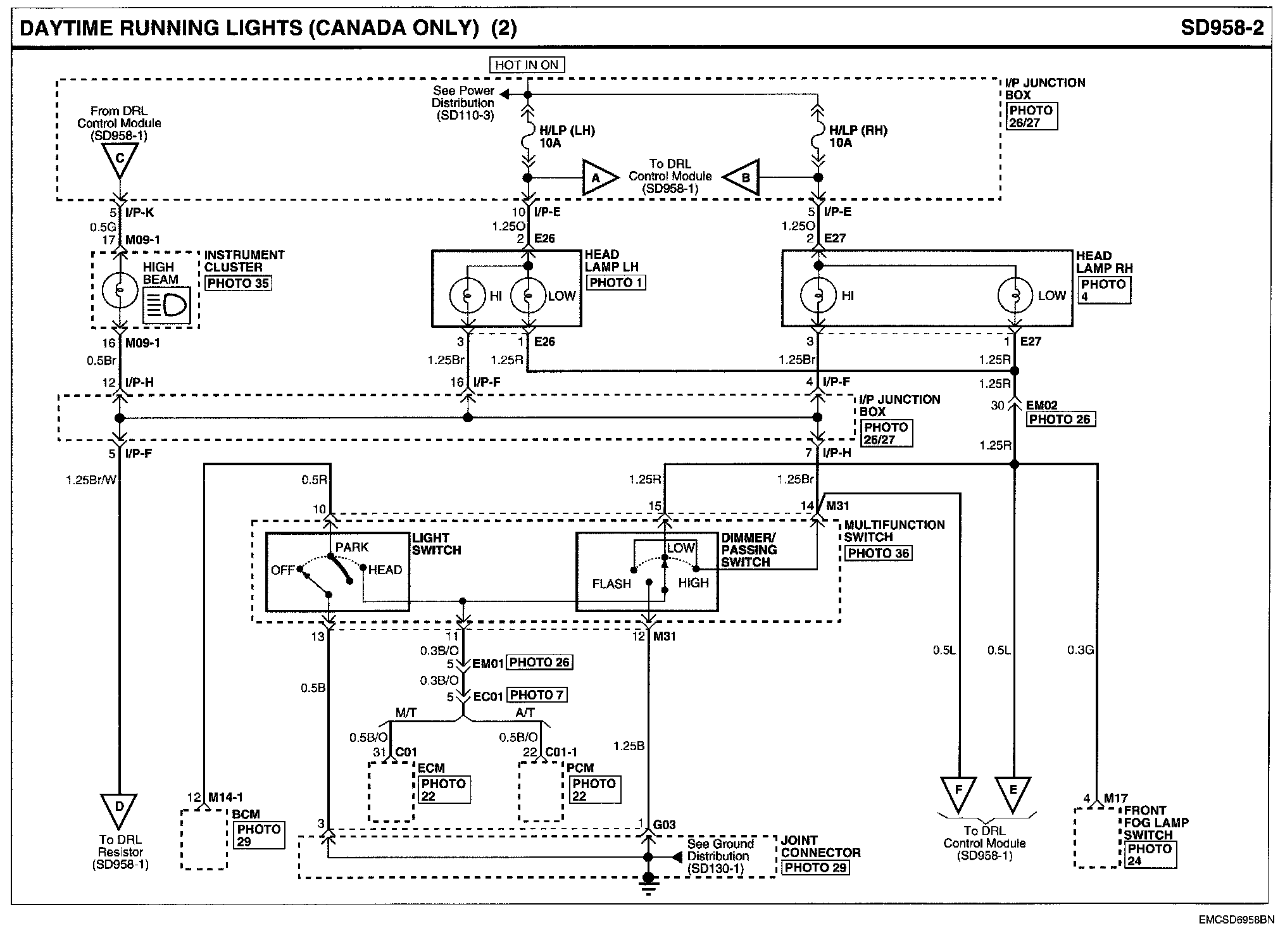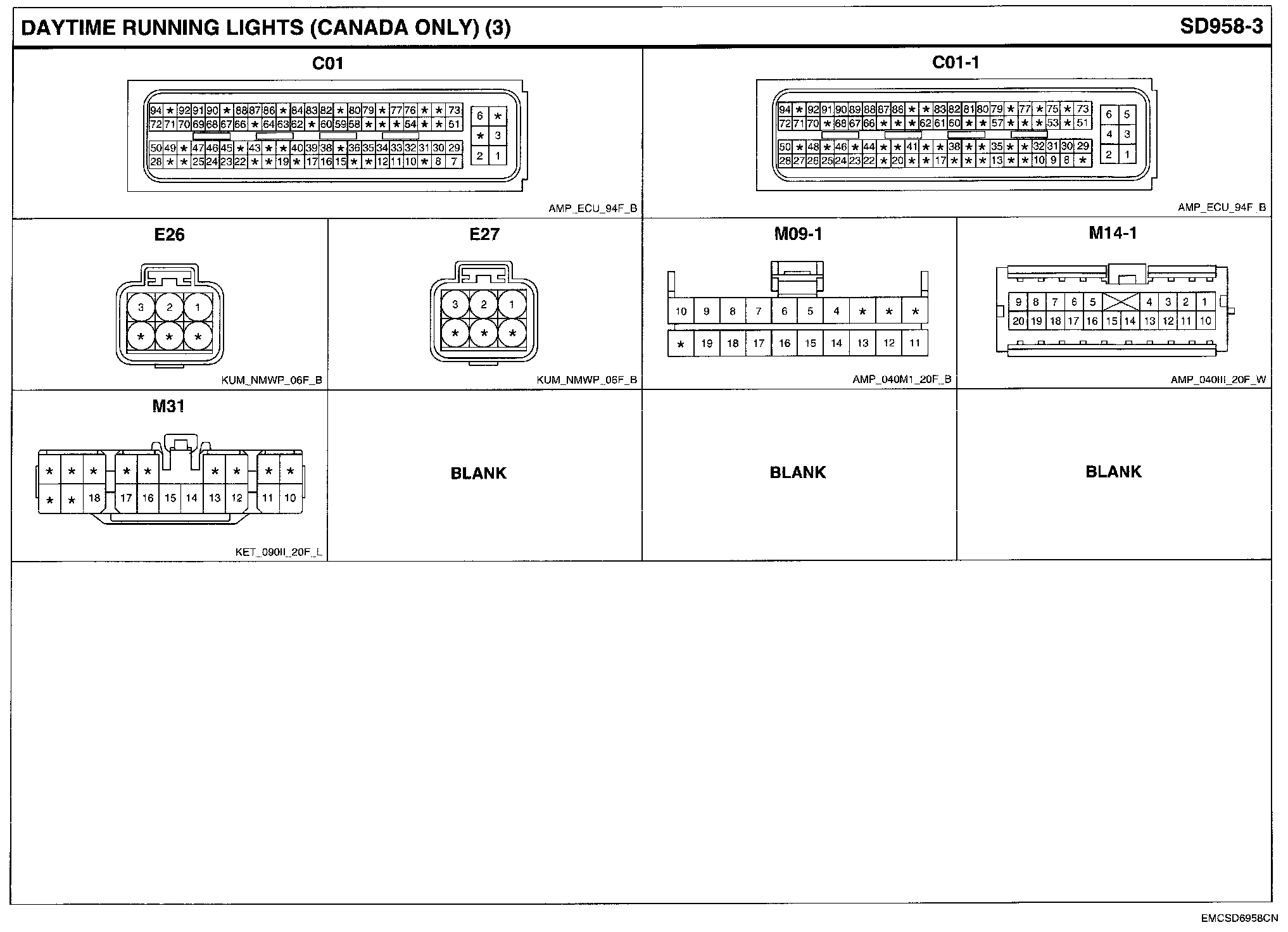 Daytime Running Lights (CANADA ONLY) Connector Pin Outs: