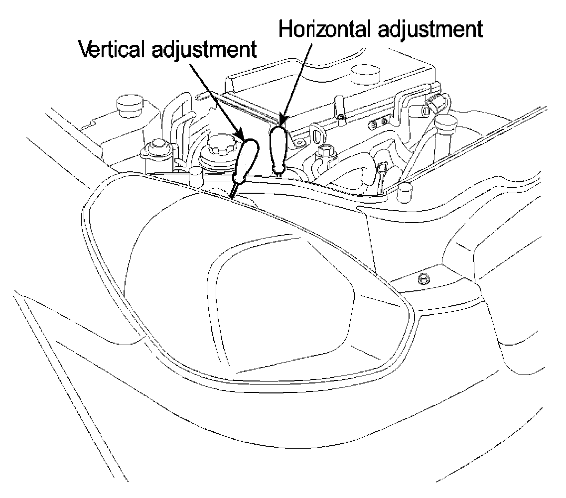 4. With the head lamp and battery in normal condition, aim the head lamps so the brightest portion falls on the horizontal and vertical lines. Make vertical and horizontal adjustments to the lower beam using the adjusting wheel.