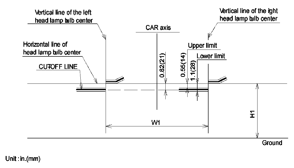 1. Turn the low beam on without driver aboard. The cut-off line should be projected in the allowable range (shaded region).