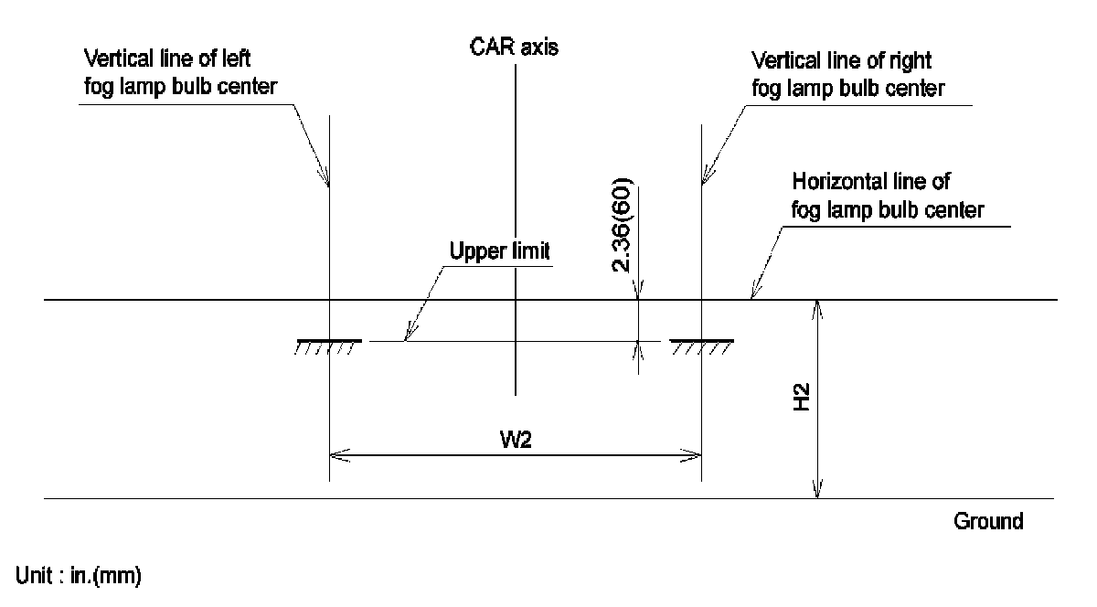 2. Turn the front fog lamp on without the driver aboard. The cut-off line should be projected in the allowable range (shaded region).
