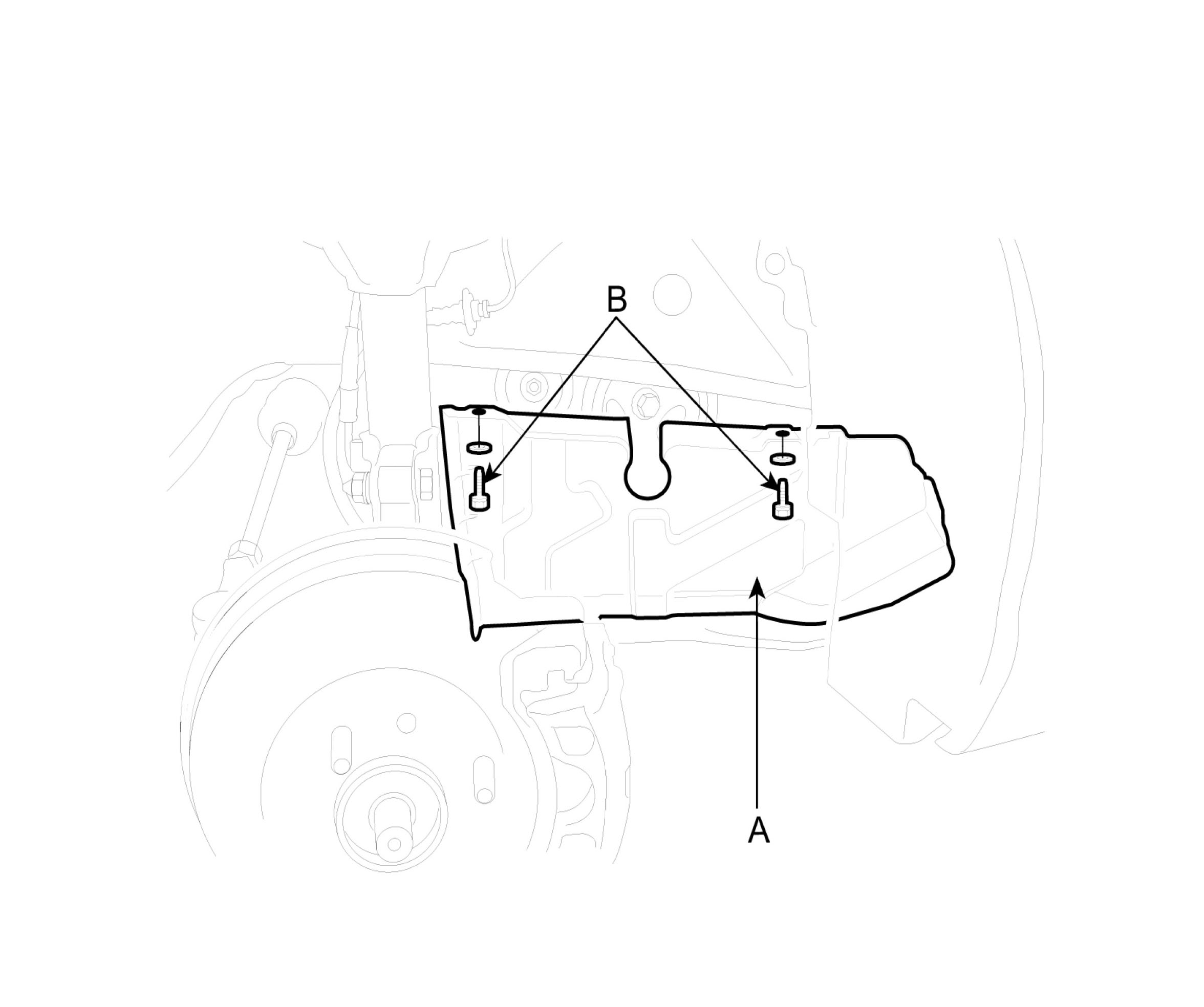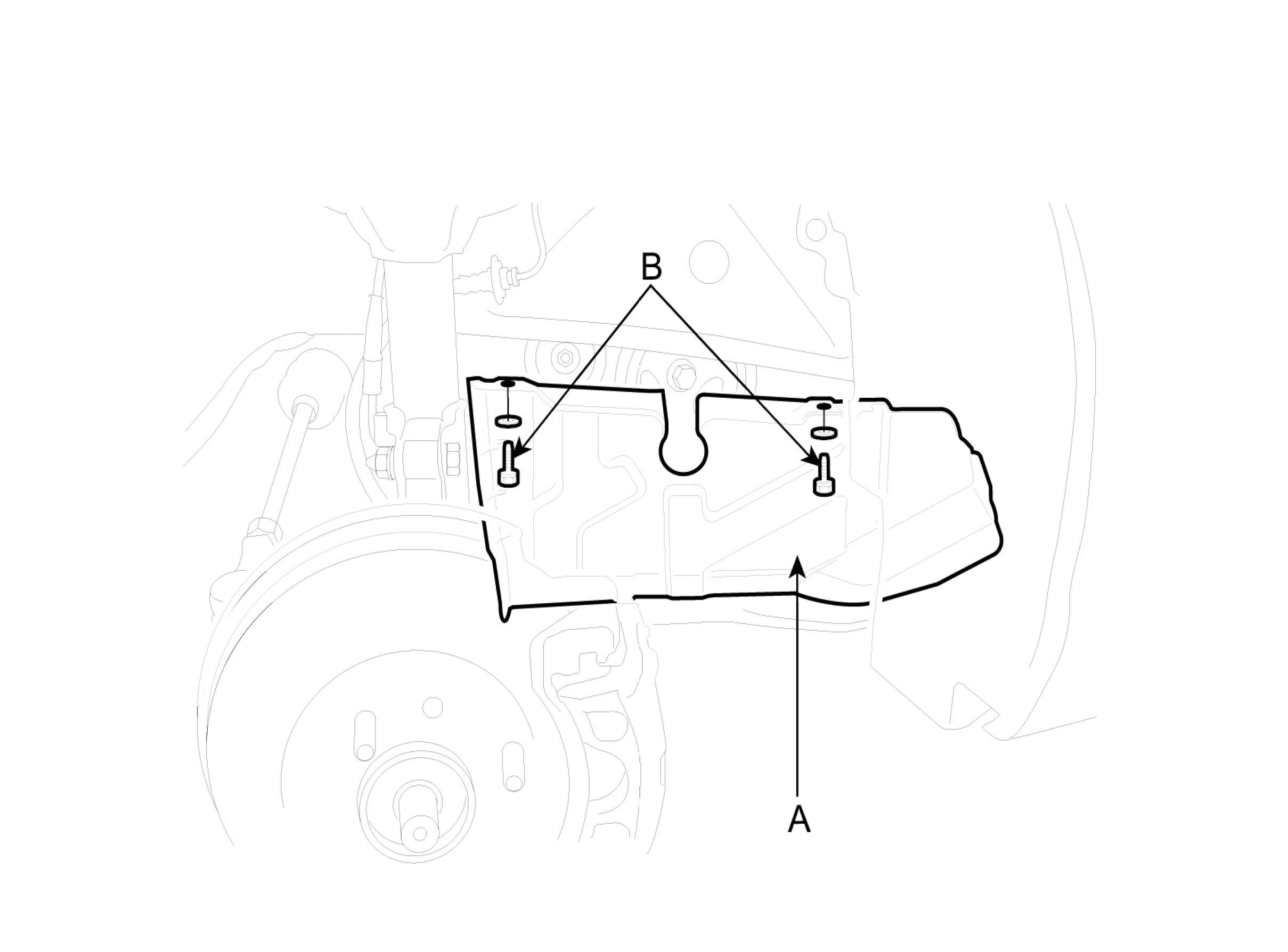 12. Remove the 4 bolts (B) and timing belt lower cover (A).