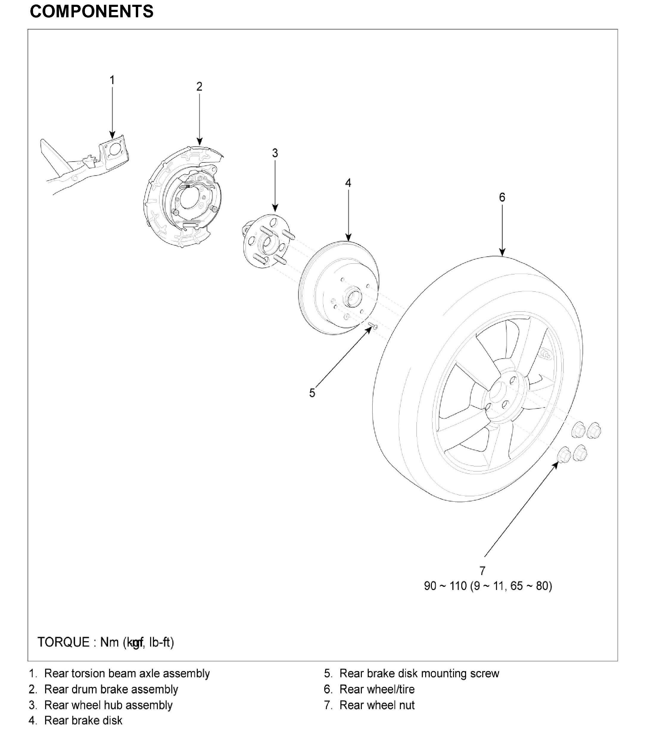 Rear Axle and HubCOMPONENTS: